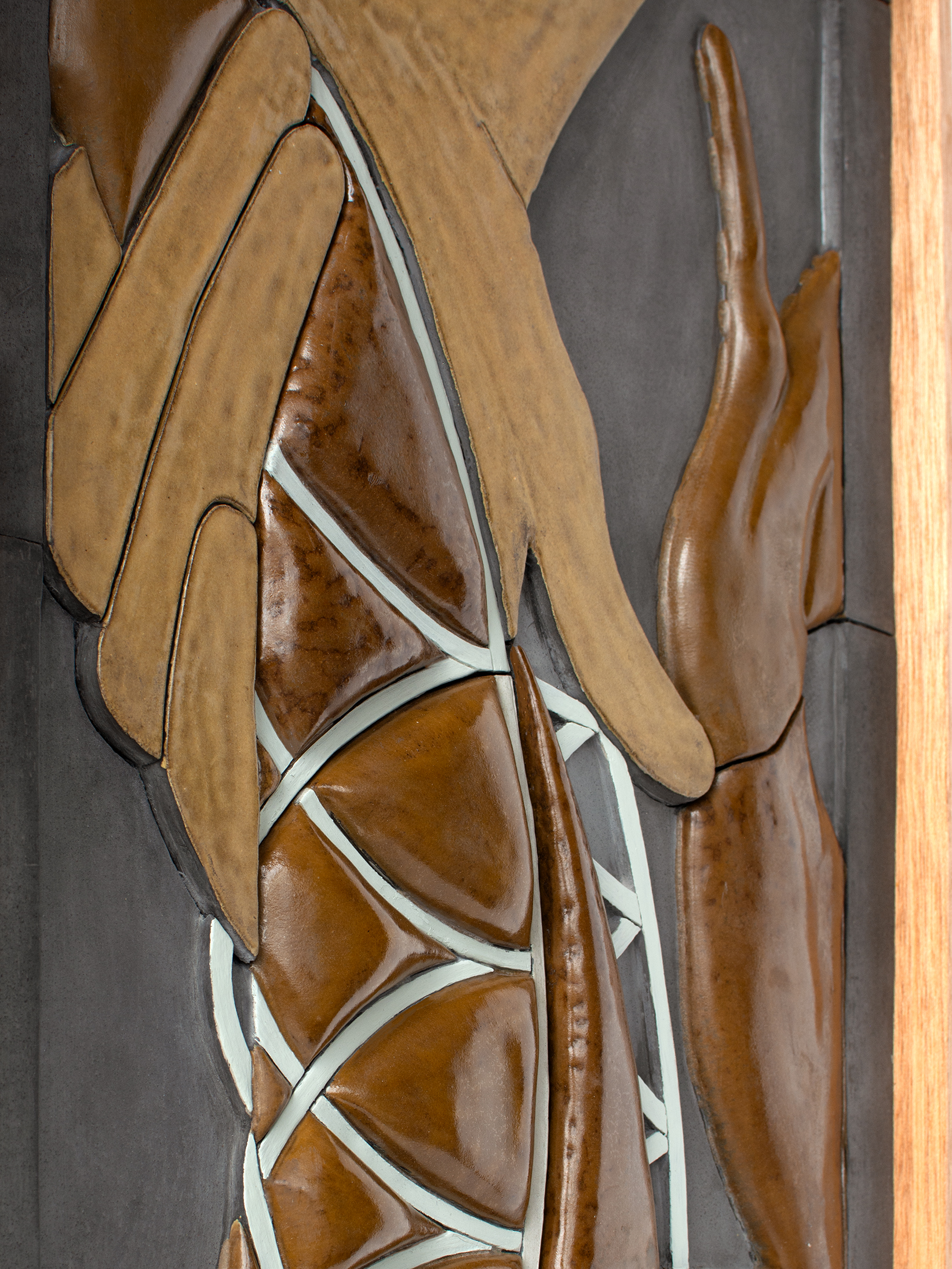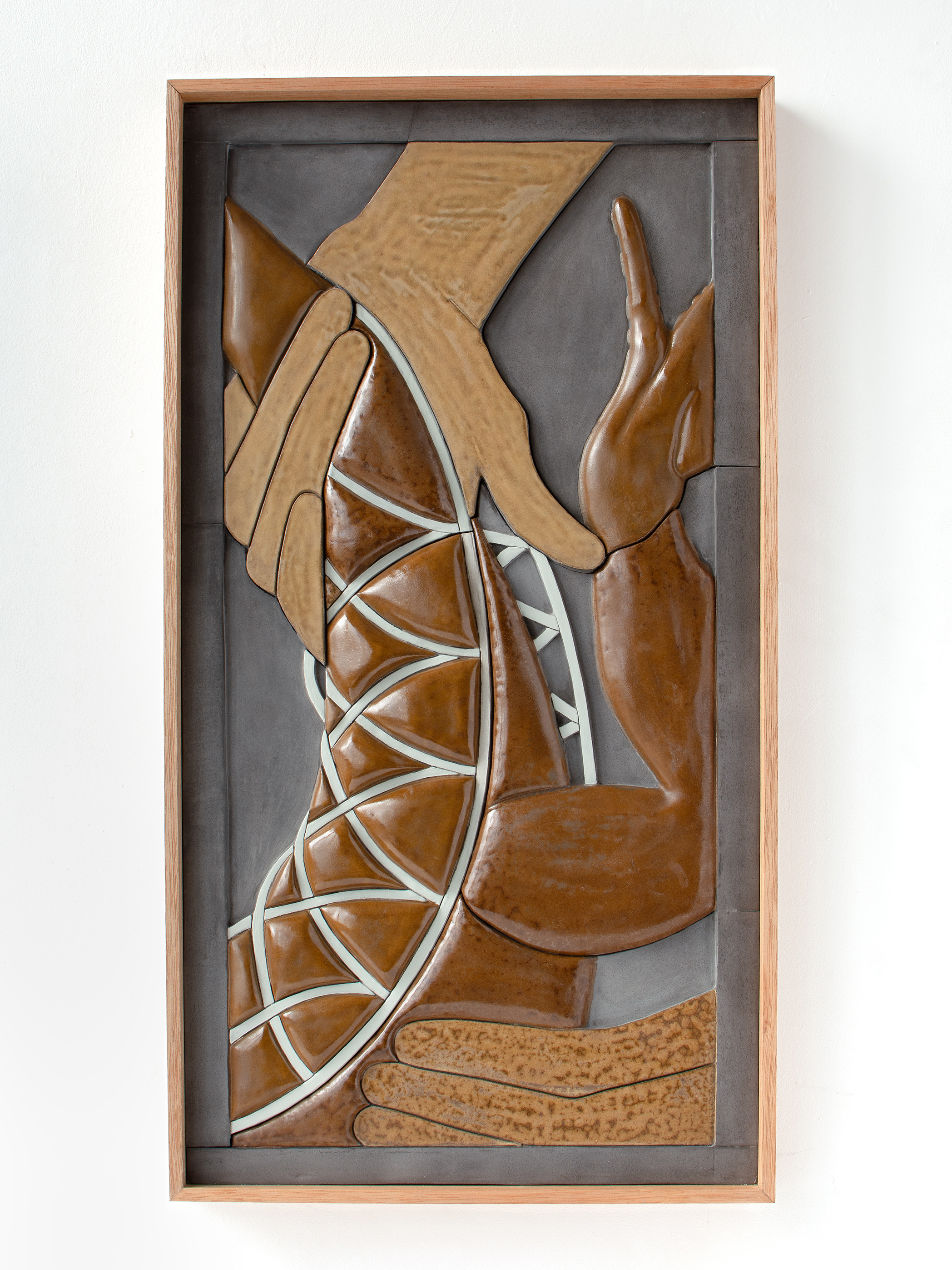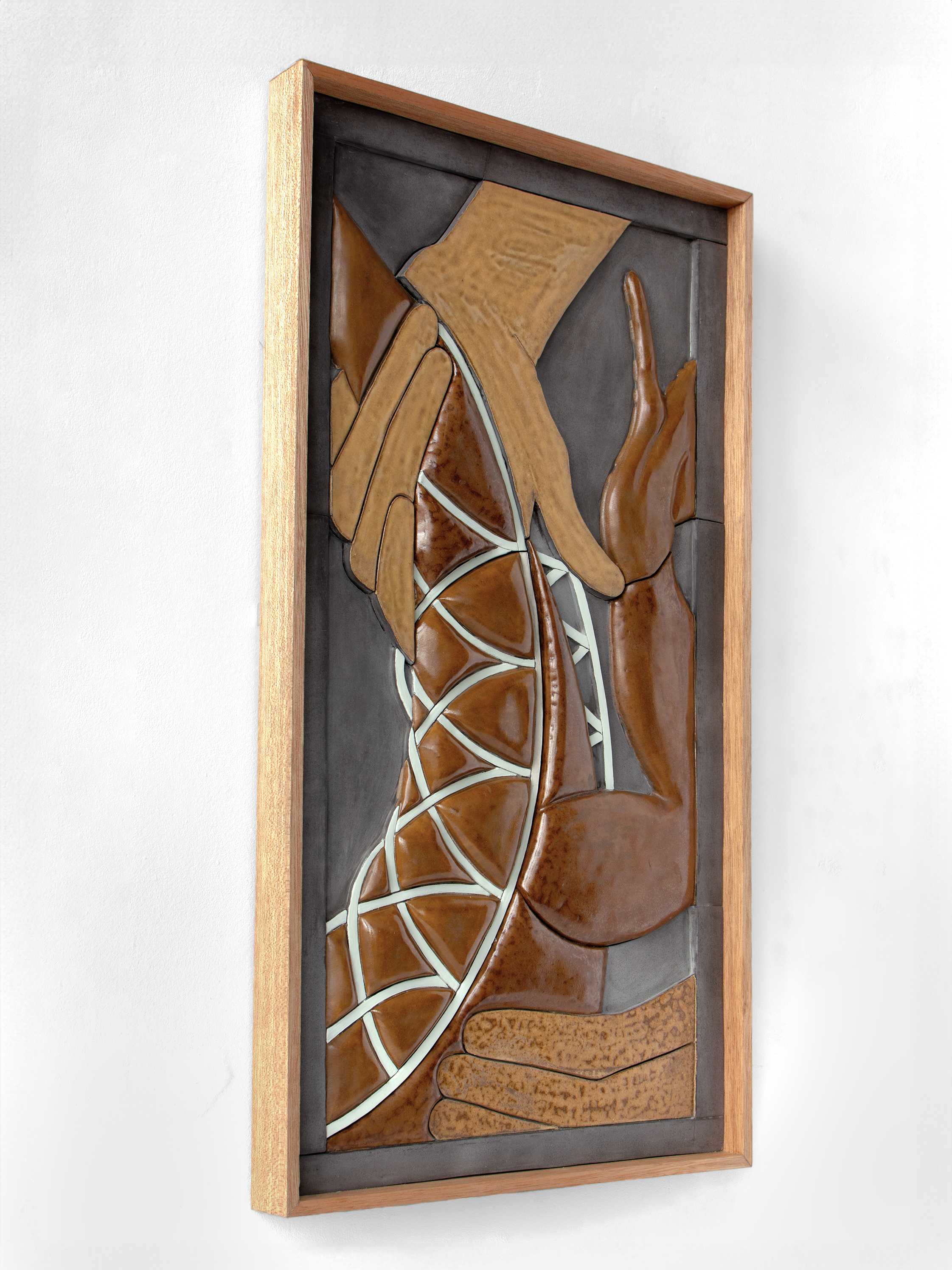 Lizard Hunt 2025, glazed ceramic, wooden frame